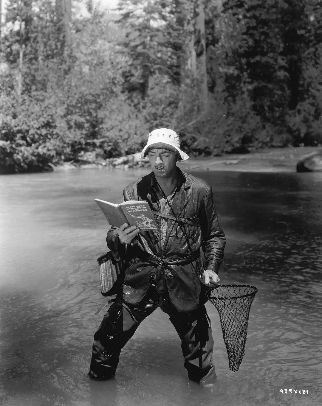 钱德勒和艾伦伯尼父女俩来到河边钓鱼,钱德勒就用这个低手抛竿一下子折服了他们父女俩,康妮更是收回她的猜疑,不过抛竿动作再优雅,鱼可不吃这一套,艾伦伯尼父女接连不断起杆收鱼,钱德勒却颗粒无收,他躲到僻静处偷偷翻看藏着鱼篓里的《初学者钓鱼入门》,可是没有什么卵用,钓鱼和打仗一样,纸上谈兵是空谈,一点用都没有。手忙脚乱的钱德勒不小心把书掉进了水里,捞书让他狼狈不堪,不想就在他扛着鱼竿坐在河中石头上气喘吁吁的时候,有鱼咬钩了,这条鱼劲真大,一下子把钱德勒带的跌入水中,顺流而下,吉比一眼认出是最难钓的大眼鰤鱼,兴奋的大喊大叫,康妮帮助钱德勒用网子把它兜上来,这可是葛兰亚登山区最大最难钓的鳟鱼,钱德勒这是走了狗屎运了。