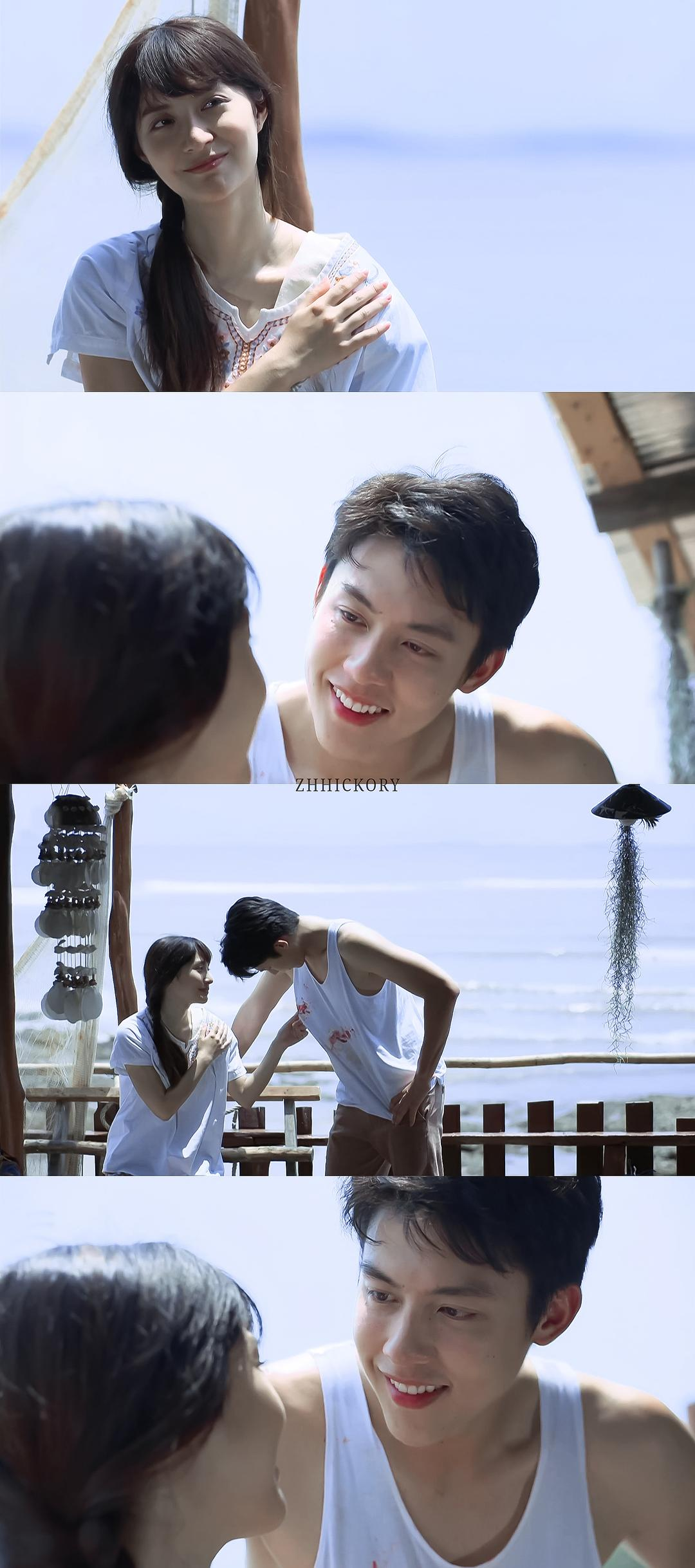 整部剧里都是这样,再自然不过。缅甸约会那天,他数次看着她出神,鬼使神差地把相机对准她,她回头,他慌张地放下相机,眼珠子转啊转,到底还是忍不住看回她。她说要去求姻缘、许愿他们永远相爱、问照片要放在哪里、在夕阳下说要和他合影的时候,他都看着她,有时候诧异,有时候好笑,有时候像是在默许她的玩笑,有时候像是在思考她是不是没在开玩笑。