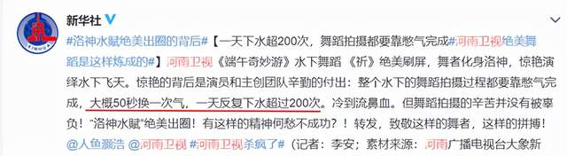 《祈》也被网友们称为“洛神河赋”,这段舞蹈全程水下拍摄,从创意到拍摄、设计,再到演员本身的表演,都是一个极大的挑战。
