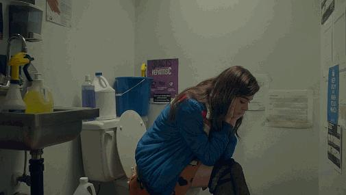 喝醉酒后的娜丁,一边抱着马桶吐,一