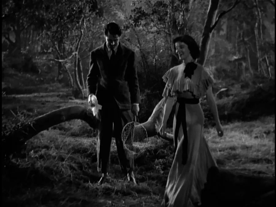 在此之前,我无法想象霍克斯在《育婴奇谭》的天才之处。有那么几场戏的确令我们想发疯。混沌的语气和吵闹,紧绷的状态和表情,人们很疲劳了——当然我们也是。尤其是在餐桌前,Cary Grant 在试图把玩疲惫的游戏,他在餐厅环绕着行走,妄图削弱此刻即将崩溃的场所。紧接着所有人都开始大喊大叫,所有人都发疯一般地想逃到花园里呼吸一口新鲜空气,正如在银幕前的我们。《育婴奇谭》的每一场混沌都如核爆一般令我们濒临崩溃。但是霍克斯,他绝对不是一位需要我们去“闭上眼睛”的作者。他知道目光需要休息,放松,在即将面对一个充盈的影像前,我们需要“喘口气”的时间——这不同样是对观众目光的训练之道?