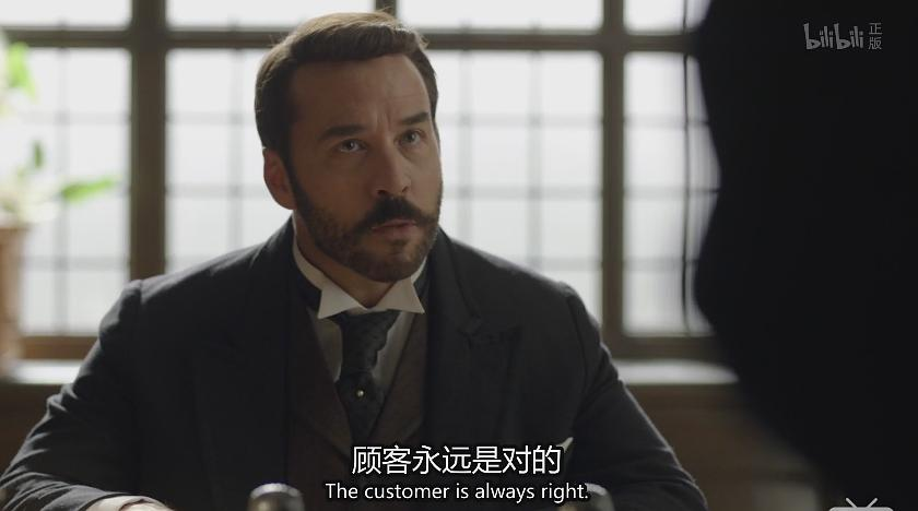 第一集Mr. Selfridge在一家店里向店员陶乐小姐选购手套。他要求陶乐把所有的手套摆在柜台上,然后问她最喜欢哪一只。那个时代所有的产品都放在柜子里面,你问售货员要,她才会帮你拿。而陶乐小姐的此举让她丢了饭碗。还好她碰上的那个无理取闹者是Mr. Selfridge。
