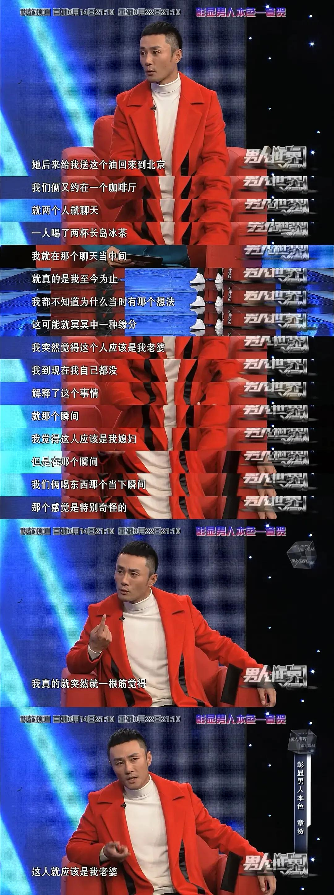 郭柯宇说,“我不想走进他,他也走不进我”,章贺当时马上反驳是都不想走进对方,这跟郭柯宇说不爱对方时,急于表明自己的心理状态是一样的。其实,郭柯宇的世界,确实比较难走进,郭柯宇有着严格的自律性和艺术性,她的灵魂很自由,她的世界很潇洒,她无所谓他人目光,她只遵循自己的内心而行动,她结婚离婚,以及说不爱,那种果断,都像因为风吹就裹在头上的大花头巾一样,管你们觉得丑不丑,自己不冷就行。她此次面对章贺,还是会落泪,可那种落泪,只是内心的触动,是感慨过去的时光,是对于世界与生活的感悟与体会,跟爱不爱或者婚不婚的关系不大,因为除非章贺能够走进郭柯宇的世界,跟着她的节奏生活,否则,当时没办法在一起生活,现在也没办法,未来更不可能。郭柯宇能够极其冷静地陈述与章贺之间的关系,不是怨恨对方,而是经过了审慎的思考,明白不必要彼此绑定,生活在一起。