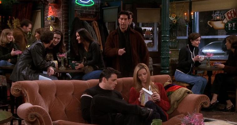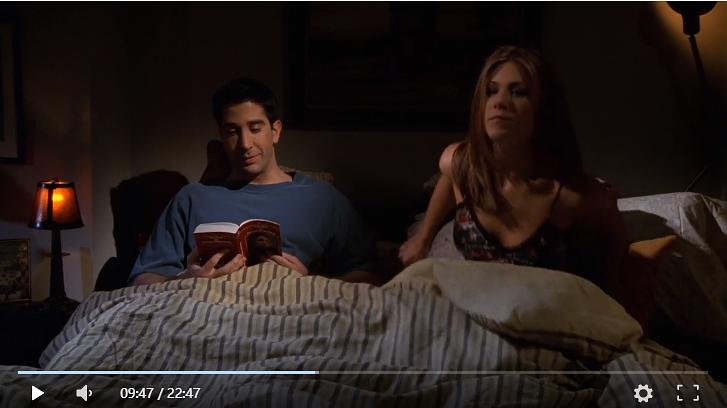 当瑞秋听说罗斯有了新约会对象,立刻自己也要找一个,难怪她正在看How Stella Got Her Groove Back by Terry McMillan,一本有关重燃爱火的书。