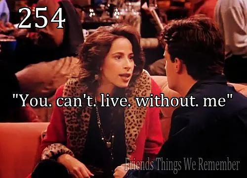 珍妮丝怪异的歌声经常惹得别人抱怨,急于和她分手的钱德勒为了不破坏大事,只能劝慰她说:“人们抱怨的一个原因是他们必须付钱听的是那个演员唱《老人河》。”《老人河》是美国著名黑人歌唱家保罗·罗伯森的名作。 Dances With Wolves罗斯要去打橄榄球,大家都觉得他太弱打不了。罗斯就问乔伊,你还记得那个“暴怒的罗斯(Red Ross)”吗?就是那个有一次排队买票去看《与狼共舞(Dances With Wolves)》,有人插队而发怒的那个罗斯?乔伊显然没有任何印象,只有罗斯自己觉得自己很牛。《与狼共舞》是凯文·科斯特纳获得奥斯卡奖的一本名片。
