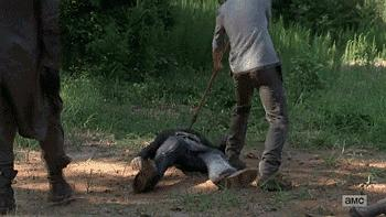 跟第一季照应了,瑞克就是牺牲了一匹马活到现在,现在又被一匹马坑了一波。这告诉我们出来混迟早要还的( ̄▽ ̄)哈哈
