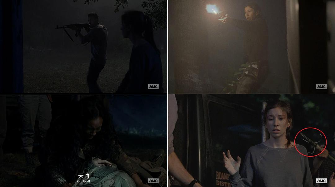 安德莉亚看到自己的妹妹艾米变成了行尸,于是举起了自己手里的枪。