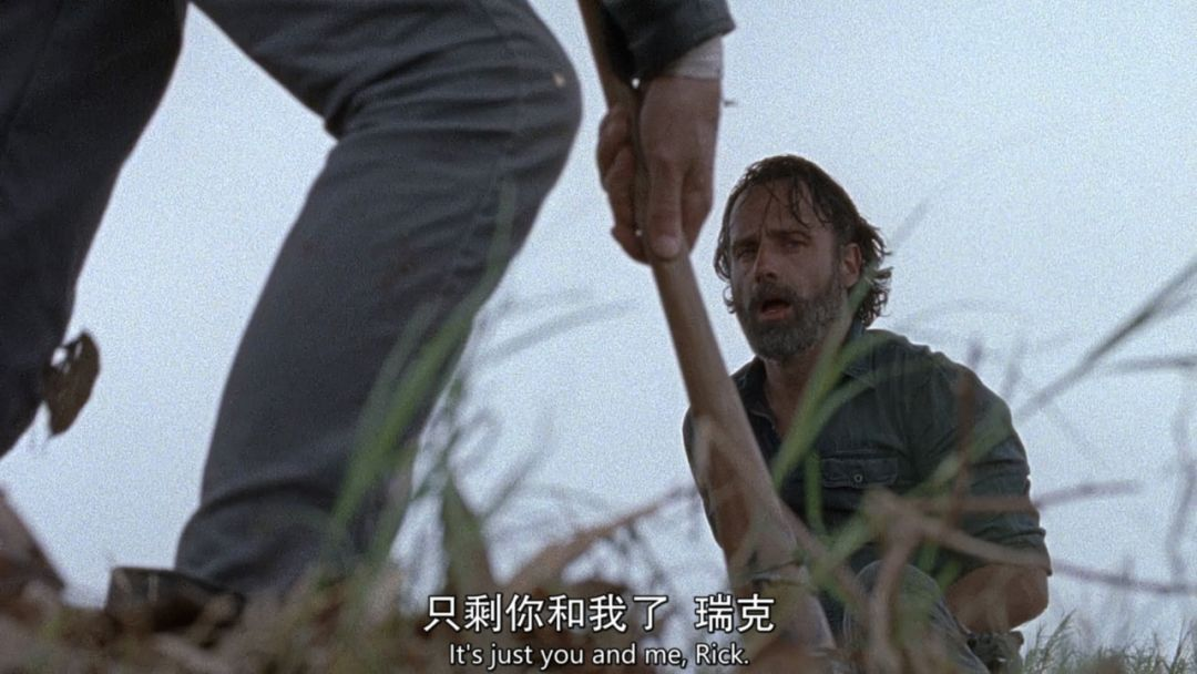 最后尼根和瑞克又莫名其妙滚在一起,瑞克你其实我看是故意的吧?故意子弹打光了告诉观众,各位观众,我没子弹了,所以只能嘴炮他。尼根杀瑞克前废话连篇,瑞克杀尼根前废话连篇,呵呵,这不是基情是什么???不然怎么解释?两个大男人嘴上说恨对方,身体却很诚实!这部剧可以和CW闪电侠We need to talk有一拼了!
