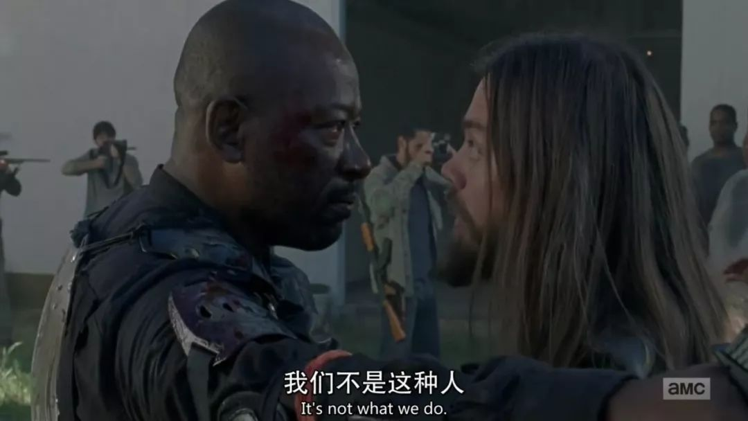 接着,“XX该不该杀”的道德拷问从A转移到B转移到C,每季都有一个人觉得我不能杀人,中途被现实打脸,态度随着剧本实现过山车般的变化。Rick、Morgan、Carol,现在是Jesus,大家都在经历这种重复性的角色刻画。请问文戏是没别的东西可以写了对吗?类似的桥段你们还没写腻,写出来不觉得是在浪费时间吗?