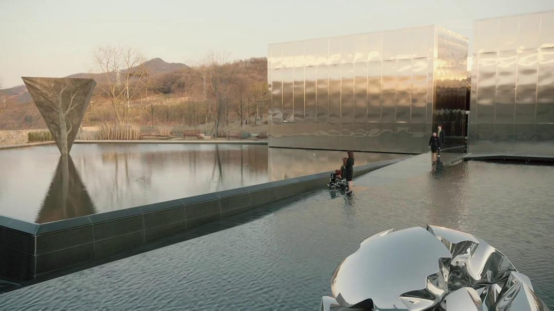 镜子、水波、对称式构图,让至安园显得幽静而神秘,也让李辛院长的身份显得扑朔迷离。