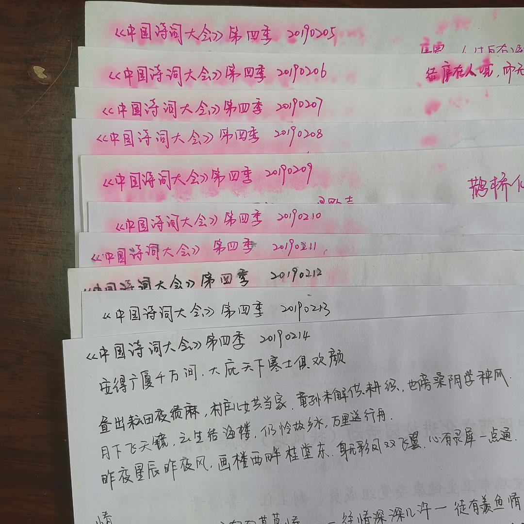 因为工作量大,数次要坚持不住,但感怀选手们都能把几百首诗词背下来,我整理一下而已,何谓辛苦?!