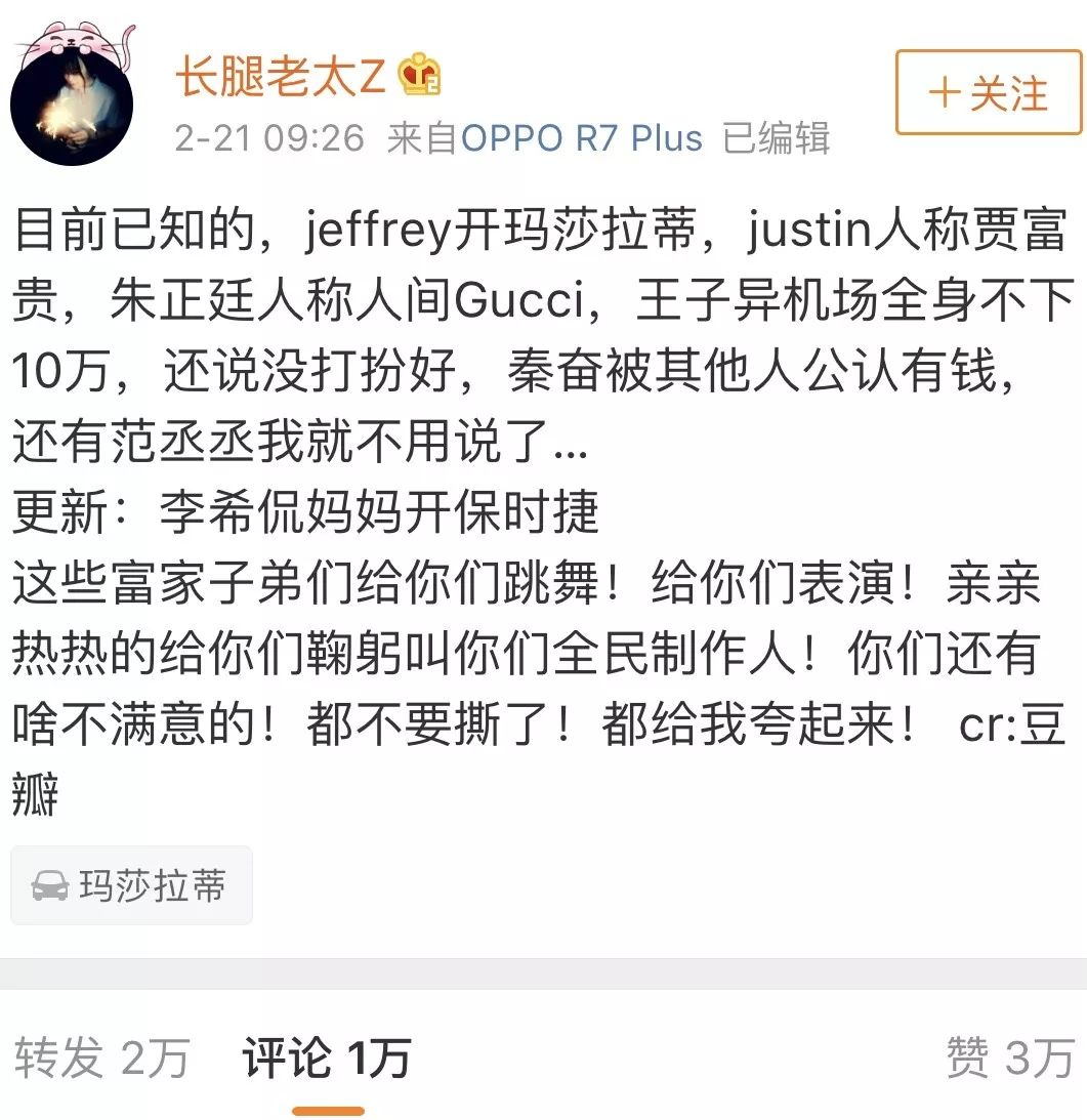 百感交集的是,这档节目无论是叫《偶像练习生》还是小鲜肉成名记,都不如被广大网友认证的“巨富之子变形记”来得贴切。比如经常逛微博的话,你对这张图一定不陌生。