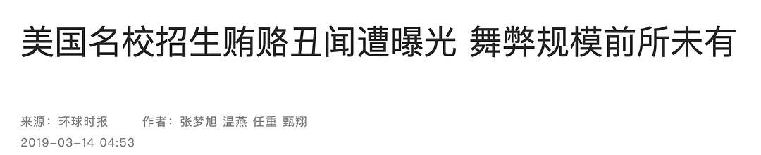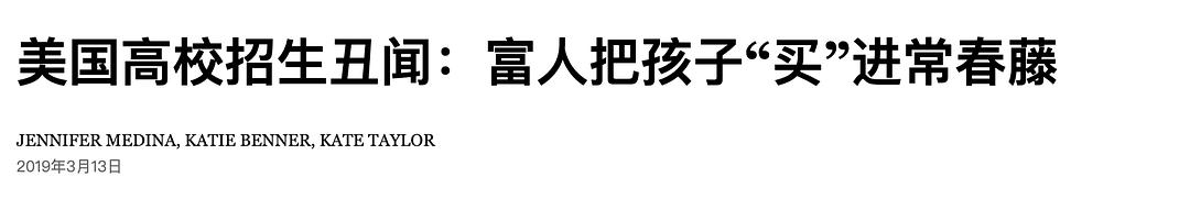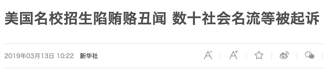 2.美国高校招生丑闻:富人把孩子“买”进常春藤:https://cn.nytimes.com/usa/20190313/college-admissions-cheating-scandal/3.美国大学贿赂弊案:名牌大学真的有那么重要吗?:https://www.bbc.com/zhongwen/simp/world-48251817n