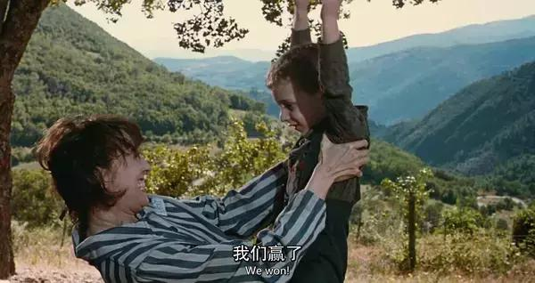 最后是儿子和母亲相聚,儿子对母亲说:“我们赢了,我们得到了1000分,我们赢了。”这是最为伤感的一幕,我们为圭多的牺牲而伤心,为孩子的心灵没有受到伤害而感动,圭多死得值得。影片告诉我们痛苦只是暂时的,唯有乐观的人们才能得到美丽的人生。