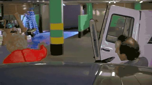 在结账之前,他会偷偷摸摸的将商品塞进别人的口袋里。而且惨遭毒手的并不仅仅只有一两位。于是,整个超市就出现了大混乱,一群人到了收银台边上都会引发超市警报。自然而然的,大家以为是机器出了故障。就这样,洛里斯的计划成功。注意看——出门前,他已经把自己塞成了这样。