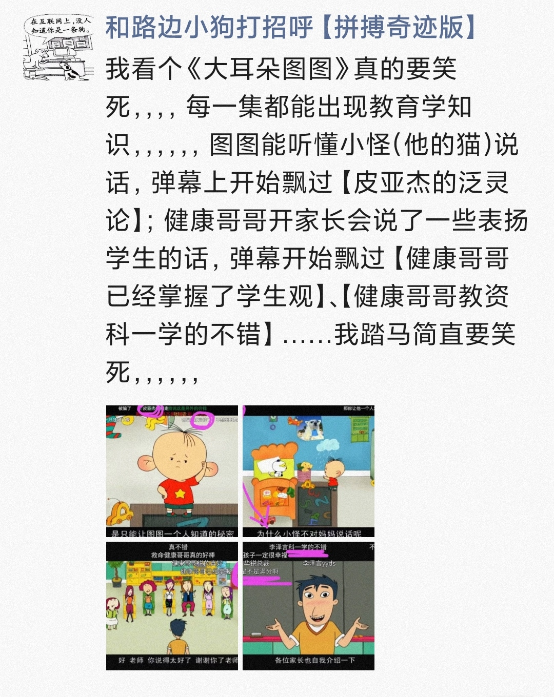 是因为……这一季图图上幼儿园了么?怎么感觉开始出现好多教育学和儿童发展心理学知识啊哈哈哈哈????!!!谢谢你《大耳朵图图》,寓教于乐,让我看动画片的同时也复习了333教育综合……我一定会努力考研的……nn还有就是刷子,是我人生中接触到的,第一个帅t吧嘿嘿(*´﹃`*),真的好酷嘿嘿,我到现在都好喜欢她(*/∇\*)……