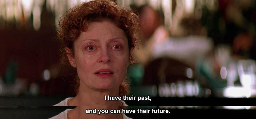 我被苏珊·萨兰登的眼神征服了。她可以不美艳,却可以很高贵,可以很脆弱可以凌厉。放开丈夫,放开工作,放开生命,最后放不开的是孩子。承受太多,让人心疼到不行。你给孩子创造的每一次美好记忆都是刻骨铭心的。