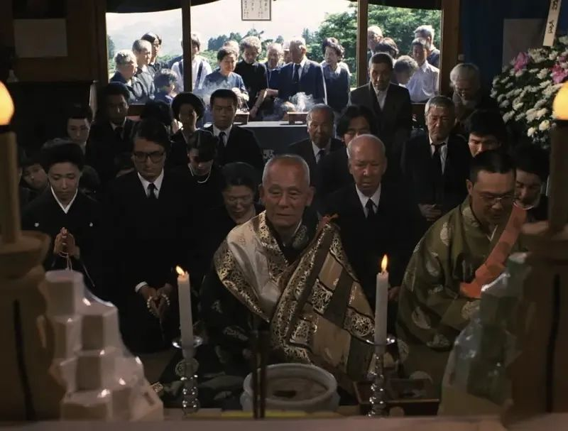 开场的前几个镜头即已感受独特的质感,而看完全片则明白伊丹十三是试图捕捉生活中天然的荒诞、幽默、和真挚情感,这种矛盾的魅力在寿尽的老人的葬礼这个事件中体现的特别淋漓尽致。而这种捕捉并非如单纯远观者那样用客观镜头去记录长镜头,而是积极的运用自己的鬼才,在把整个葬礼过程完整表现的同时,显现其中天然的荒诞、幽默和真挚复杂情感,以及某种复杂的混合性本身,并且让人回想起每个人自己生活的类似事件中,之前被忽视的同样的这种奇特体验。我认为大致的来说,伊丹十三在本片有如下很出彩的做法: