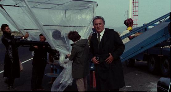 这种崩溃在《罗马》中便显得触目惊心。建筑队发现一个古罗马地宫,壁画中那些鲜活的人像被时间封存,成为永恒,可一旦遇到空气,便瞬间灰飞烟灭。“它们在消失!得做点什么!”一个摄制组的人说。然而没有办法,什么也做不了。历史在消逝,罗马的精神在消亡。这一幕象征了两个罗马之间的碰撞:古老文明和现代文化。此处不免与《萨蒂里孔》的结尾相呼应:活生生的人最后却呈现为崖顶残垣断壁上的人像,任凭风吹雨打。