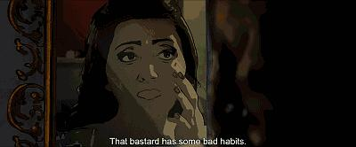 因为无法采用真人外景拍摄,《德黑兰禁忌》是在绿幕前拍摄再后期转动画。它采用的动画效果很像美图软件中的“水粉效果”,多阴影却两色分明。