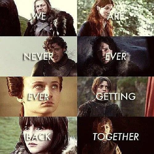 4.再后来,凯特琳与艾德史塔克婚后幸福,育有三子两女,艾德死后,凯特琳跟长子罗柏反叛,五王之争开始,凯特琳主要负责联系其他各家族(也挺悲催的,联系蓝礼,结果蓝礼被黑魔法所杀,联系自己的亲妹妹结果被拒绝)后联姻北境封臣剥皮人波顿家族与自己徒利家族封臣弗雷家族,在弟弟艾德慕的婚礼上,弗雷与波顿反叛,凯特琳被杀,罗柏与怀有身孕的妻子被杀,艾德慕与未婚妻被抓,舅舅黑鱼布林登由于临时尿尿,躲过一劫逃到奔流城(俗称尿遁,这个情节简直多此一举)。凯特琳被杀后成为石心夫人(电视剧没涉及,就不说了),整个北境联军土崩瓦解,乔弗里剥夺徒利家族封号封地。这一场景便是冰火里第一大高潮,整个电视剧历史上观看人数最多,评分最高,讨论最激烈,最惹人争议的血色婚礼了(第三季第八集,如果没记错的话)。有时间单讲。