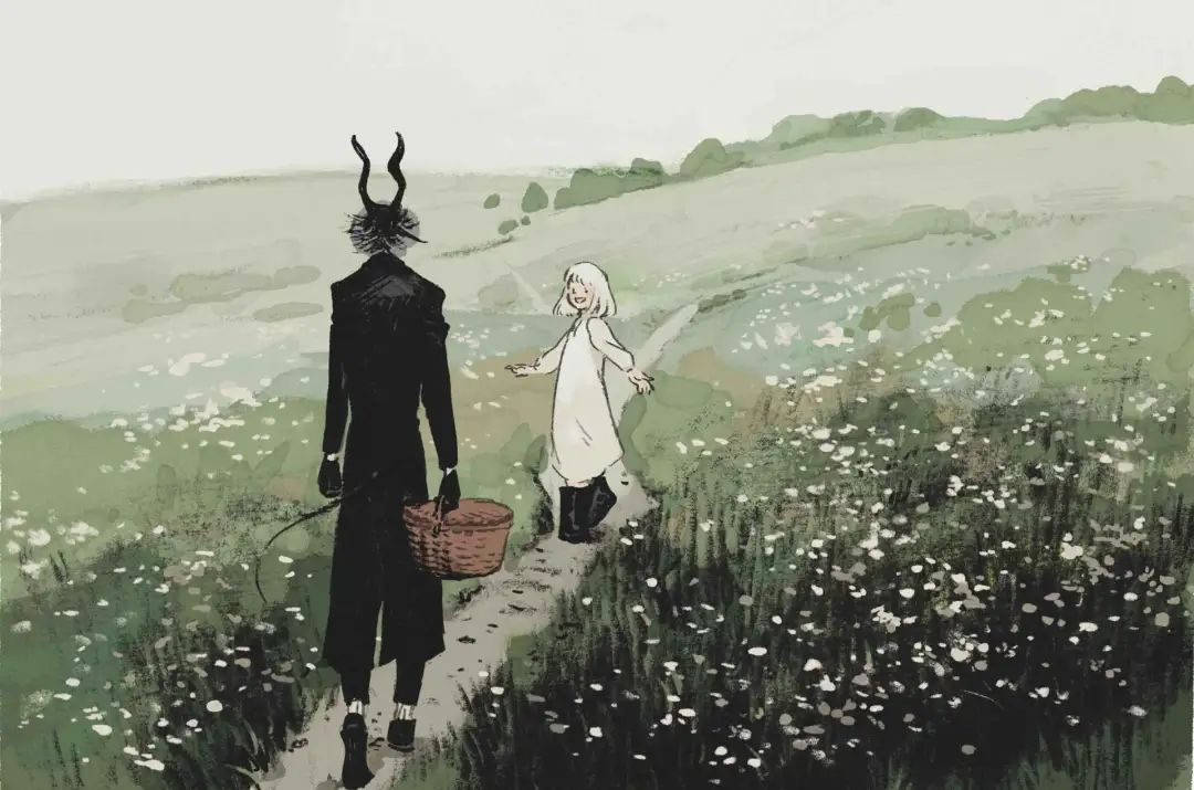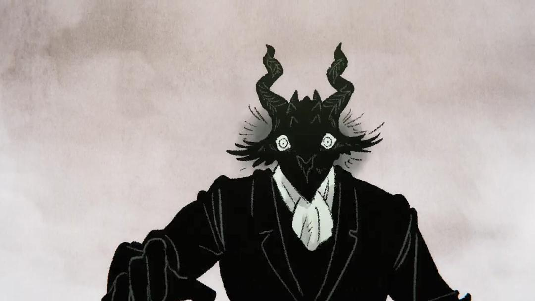 这个外之国的来客,穿着笔挺的西装,有着龙骨般的头颅、鹰隼一样的眼镜和一对羊角。