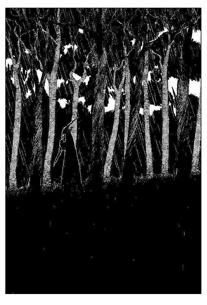 n林间那一棵棵挂着衣服的树,都曾是一个个被诅咒的人。