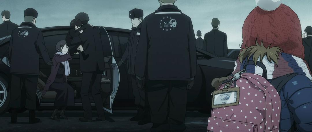 最后,在破除了EVA的诅咒后,众人纷纷从身体上也成长为成年人。在车站的那边,熏和凌波丽搭上了同一班电车。穿着サラリーマン装的真嗣在车站的这边,被真希波摘掉了项圈,二人从车站走出了二次元世界,影片结束。不论你是开高达和还是EVA,事情办妥之后,也要去生活和工作啊。