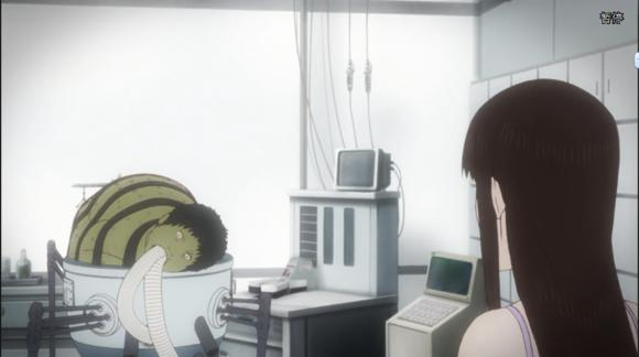 问题就出在漫画改编动画这种形式上。二子的作品以短篇见长,《漩涡》《富江》《双一》等系列都是单元剧,走的是刀刀见血的套路。《鱼》是少见的长篇,然而仍旧是短篇的锋利。但他的锋利不是让杰森拿砍刀追在主人公屁股后面,而被锁在缓缓合上的断头台那种逃生式焦虑。