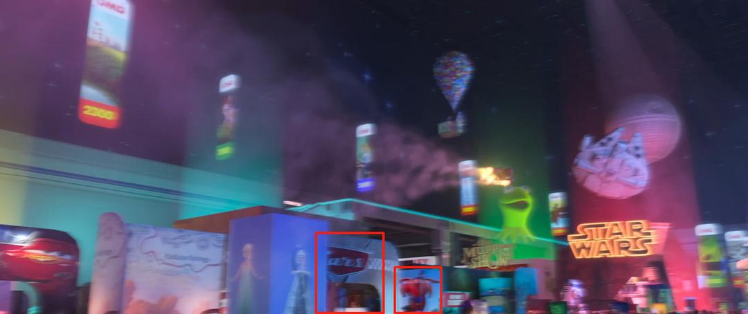 光这一张图就出现了《飞屋环游记》中的气球房子,《星球大战》的R2D2、千年隼、死星,小飞象,钢铁侠,美队盾牌,皮克斯的标志小跳灯,《机器人总动员》中的伊娃,《恐龙当家》中的阿洛和点点,《玩具总动员》中的胡迪和巴斯光年等等。