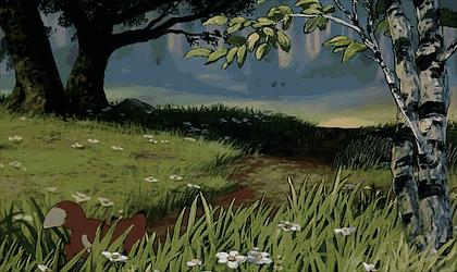 片中自然景观用的都是淡雅水墨绘制,可以明显看出水晕墨章的效果。