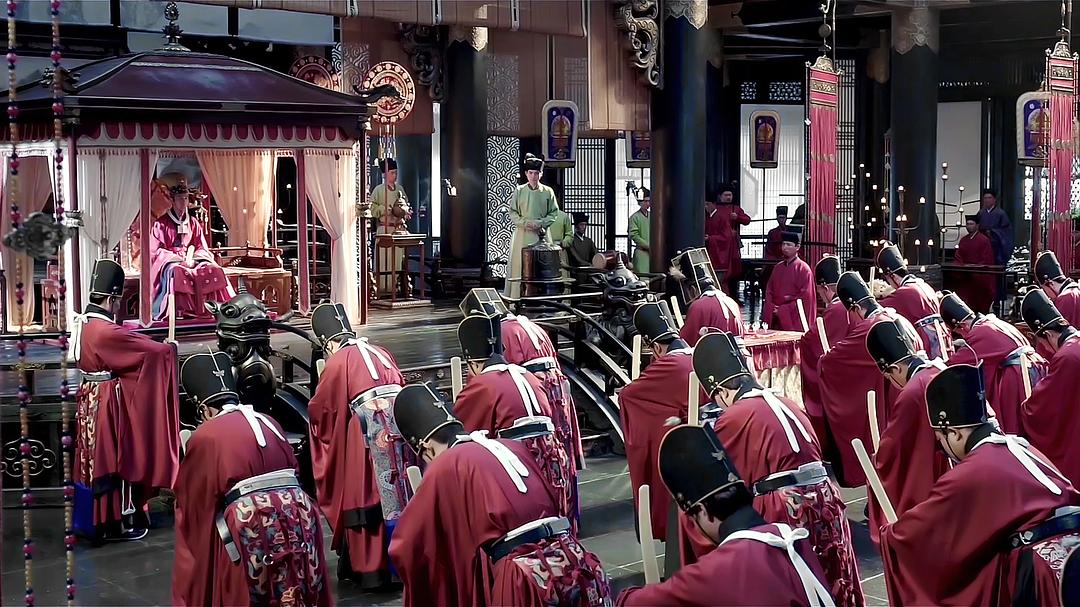 这一次从帘后走出的官家,从容笃定,与上一次相比,锋芒再不可挡,帝王之势已成。于是队友带头,群臣应和,共答天戒,官家完胜。