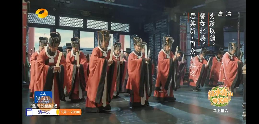 还有清平乐剧本写得绝对有戏剧张力冲突,不过宙宙不如军军(《鹤》剧杨文军导演)会玩多种花样,清平乐镜头与剪辑太老实太保守。实际上,我觉得镜头方面,远景与特写需要适当切换,有必要对如开封外景等用一些长镜头,对考究复原的有仪式感的表演场面的礼服,多一些不同机位,进行细节特写,让观众可以欣赏到“汉官威仪”礼服之美,还有典礼“大朝会”“册后大婚”“祭天”“谒庙”等重大宋代礼仪活动大场面的仪式感,更加强剧集节奏感、气质韵味与视觉冲击,不像现在剧里这般将“元正大朝会”“仁宗乾元节见外国使臣朝贺中风(朝服)”“三月上巳时节亲耕籍田礼”(通天冠绛纱袍服)“开宝寺祀神祈雨(祭服)”“刘太后衮服谒庙(衮龙服、十二旒冕)”这些已经拍了的场面 剪的如此节奏温吞、礼服都也看不清 可惜了,但瑕不掩瑜,况且各人审美与想法也众口难调,不必强他人之意志而一元化。