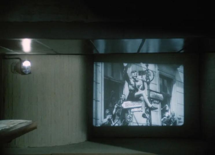"在計算了先前的延遲後,突然所有事情進展加快⋯我們具有一種允許‘提前預告‘的未來的‘前知覺’。期待因此類似於記憶。它由一種已存在的意象構成,在此意義上,它先於還未發生的事件,但這種意象不是被過去的事物所遺留的一種印記,而是一種未來事物的‘徵兆‘與’原因’…"保羅·利科在奧古斯丁《懺悔錄》中質詢時間經驗的疑難時,如是描述"讀者的觀察"。元首清退作戰會議所有與會人員,在大捷頻傳的1941,偷偷觀看蘇軍挺進柏林的"未來錄影",此時的"未來"已是黑白舊影,背影在投影前對影成三,"當下"的實在被"過去"和"將來"的黑影挾擁成隊列,期待與記憶的循環、敘事與時間的循環在謔嚷的戲中戲空間中打開了異質同構的詭門,唯一的解救,將或曾是那瓶不參與時間生成的藍色化骨水,消溶食物的殘渣與余棄的尸體,在永恆死亡的基座上重新划定時間秩序。《明天我會醒來用茶水燙傷自己》