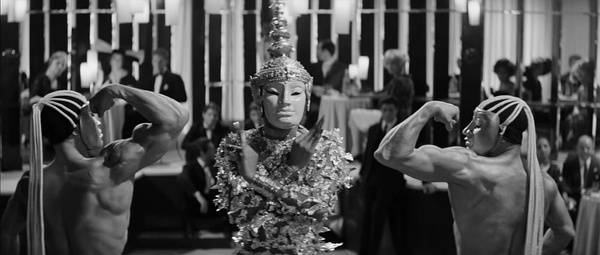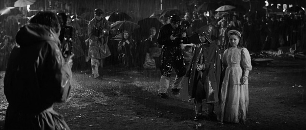 费里尼电影里一个重要特点就是经常伴随有马戏团、嘉年华式的歌舞演出或小丑表演,对于费来说这是他由衷喜欢和乐此不疲的,简单的表演、直接的欢快最容易赢得孩子的欢欣,可以说这些歌舞表演元素正是费里尼渴望的童趣式快乐的表现。《甜蜜的生活》里虽然也有这类的表演在里面,但在影片整体的空虚绝望和嘲讽面前,那些表演并没有作为一种积极的生活或娱乐方式展现出来,而是依旧淹没在现代腐化、空虚生活的泥潭里。这样的失落不由的想起了《公民凯恩》的“玫瑰花蕾”。
