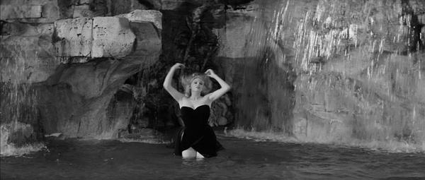 结束之后,Sylvia来到旁边找到她的丈夫Robert,被骂了一顿,Sylvia愤而离去,Marcello去找Sylvia,带着她驾车出行。中途下车Marcello想亲吻Sylvia,但听到狼群嚎叫,Sylvia扭过头去开始学狼叫,很开心Marcello找地方想安顿两人,找了Maddalena,她接到电话很惊喜,Marcello说想带个人去她家里,她问是谁,他不说,她问你想干什么,Marcello就自行否决了去Maddalena家里的念头。这时Sylvia在车里无聊,下来与野猫玩,问他有没有牛奶。他去找牛奶回来看到Sylvia在喷泉里戏水,Marcello被这个场景惊呆了: