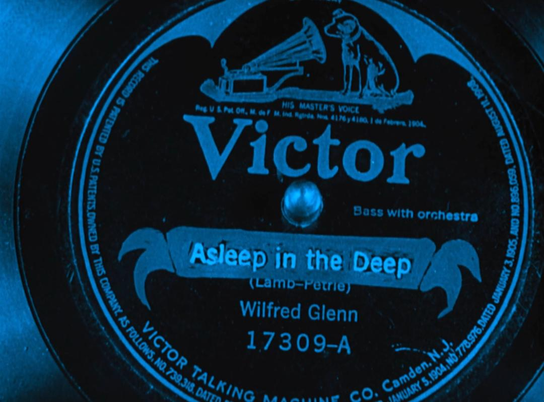 n值得一提的是,这居然不是这首歌第一次在基顿的电影里“出镜”了!基顿1921年的短片《剧院》中,如果你留神看那张写满了 Keaton 的节目单,会发现其中有一首曲目就是这首“Asleep in the Deep”!看来基顿一直对这首歌念念不忘啊!