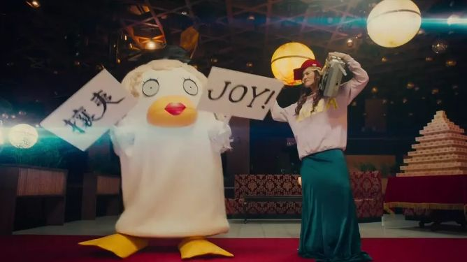 担心二次元气息违和?那就加大剂量,进行强力灌输,在极短时间内理直气壮给观众建立印象:这部电影的气质就是如此,这就是一部沙雕电影!