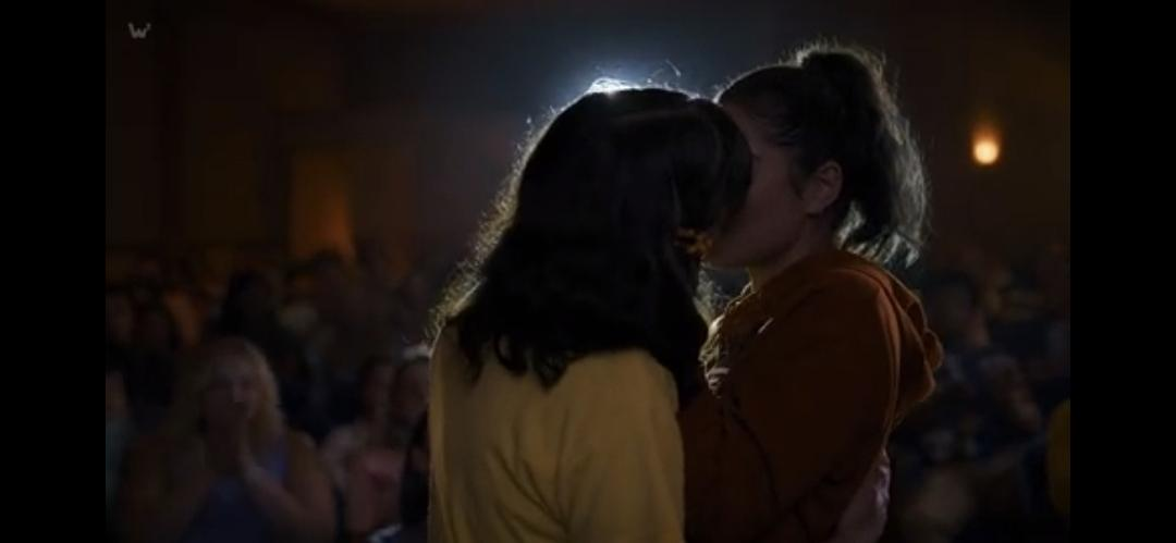然后剧情就来到了本片一个特别戏剧的点,Gabby主动亲了Paige: