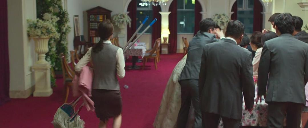 勇男和义珠重逢后在楼道相谈,在这个空间里有许多带有文字的装饰,不管是易拉宝还是指示牌,都能看清楚字样。唯有显示为“薄荷大厅”的纸张模糊不清。在韩国,薄荷的花语是真心,模糊不清代表着并非真心。在这个楼道里,勇男对义珠没有说过一句真心话。