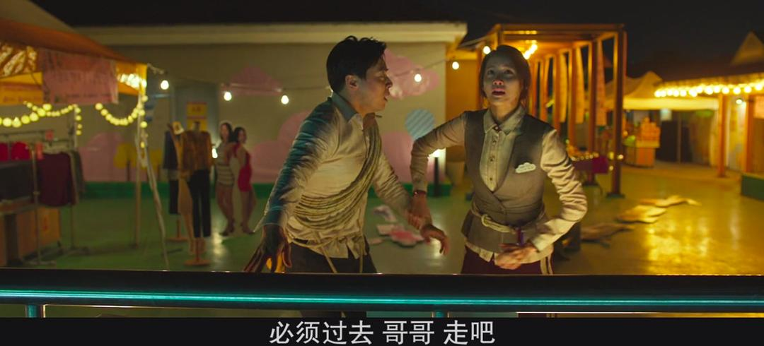 即使很可惜的,相较于本片对男主角永南从人生鲁蛇到逃难英雄的饱满表达,对意珠的角色塑造还是稍嫌空白,少了家庭脉络和前史铺垫,也遗憾地错过了以意珠视角再深化的可能,但无论如何,本片对两位主人公并肩逃难的俐落刻写,依旧相当亮眼又扣人心弦。不渲染、不矫情、不自溺,前一秒毅然将逃生机会让与他人,下一秒也会忍不住流下眼泪、挣扎委屈,但擦干眼泪后,还是勇敢地继续为活着而奔跑,这当中不曾摒弃的,是最真实的人性。没有超级英雄的超能力,所做的不过是将登山社所学学以致用,也称不上拯救世界,却至少能救家人,救素昧平生的陌生人,救自己。也无怪本片上映后,会在韩网掀起一波同人饭绘潮,跃然纸上的,皆是哭得脸蛋发肿又可爱真实的两位主人公,让人由衷动容。