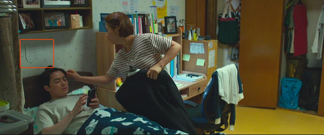被困在酒店时,妹妹用手机在sns发求助信息,与此同时屏幕上也滚动了许多来自网友的求救,其中就有被困补习学院学生们的求救信息,前后呼应。