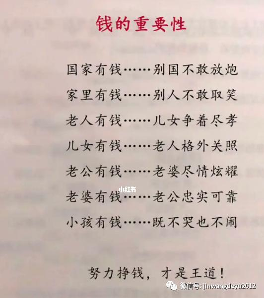 没有钱,你的孩子不能接受好的教育,同学去外国游学,他就只能待在家里当熊孩子;没有钱,你老婆就要围着锅台转,身材走形,脾气暴躁;没有钱,你就要为了五斗米折腰,就算上司是个傻屌,你也要赔上一副天真的笑脸;没有钱,真的没有未来。