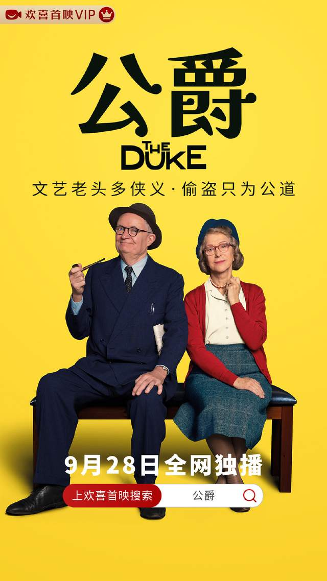 改编自英国国家美术馆历史真案,奥斯卡最佳男配吉姆·布劳德本特、奥斯卡金像奖影后海伦·米伦联袂主演喜剧《公爵》今日起独家上线欢喜首映。