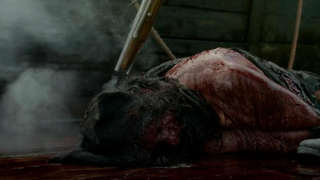 n1.黑胡子蒂奇船长n听闻得意门生兼海盗事业接班人、查尔斯死在拿骚之后,他强势归来,想要报仇雪恨。n与总督的海上决战,败北,被扔到海里,顺着船底再拽上来,如此三次,血肉模糊。n然而,他依然挣扎着最后一口气,生命力顽强,令人不禁动容。n历经千刀万剐一般的酷刑,他宁死不屈,展现了一代海盗王的尊严。总督无奈爆头枪决。