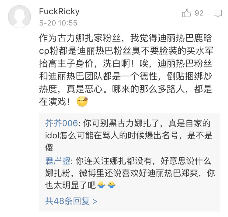 估计过两天就要被某l吧控评,然后粉丝们到处又开始说,我们从来没黑过迪丽热巴,都是他们倒贴