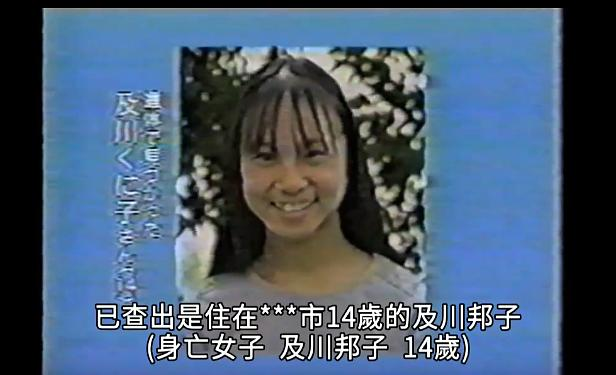 后来电视台努力的在寻找关于邦子的一切资料。终于找到了80年代到90年代有一则电视新闻录像,有人刊登了寻人启事,寻找的失踪的13岁少女就是邦子。邦子已经死了,骸骨被人发现在后山。