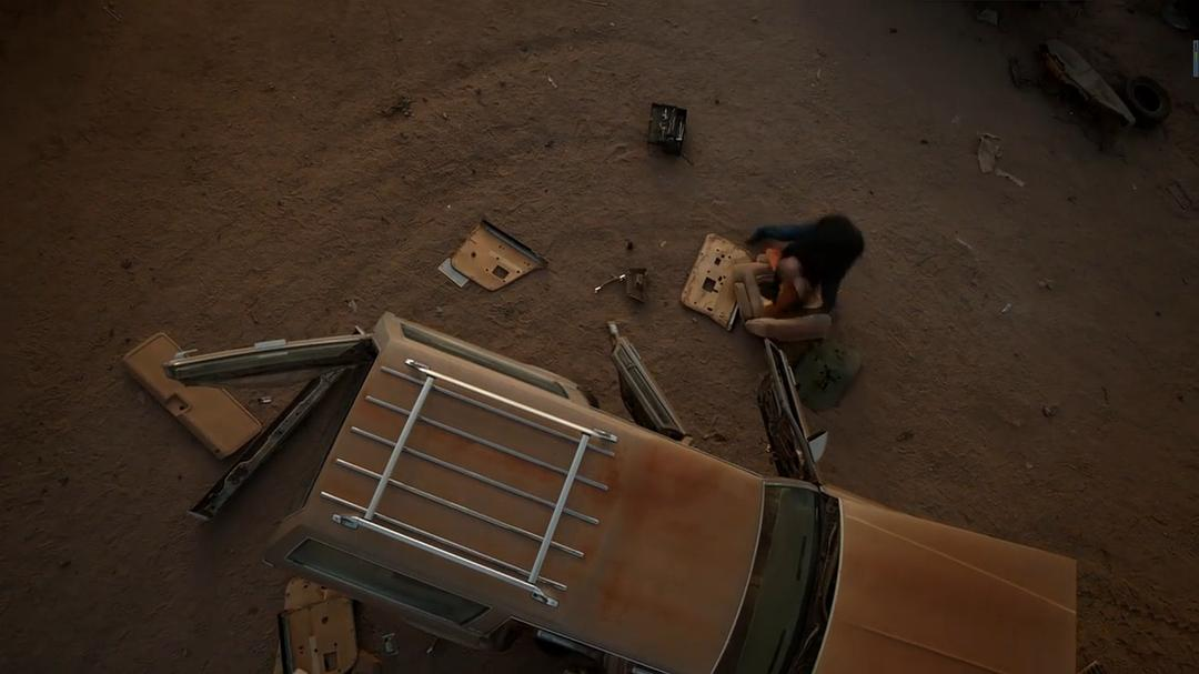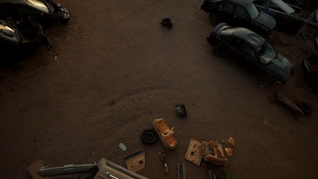 渐渐汽车消失,废车场大场景出现,太阳也慢慢落下nn