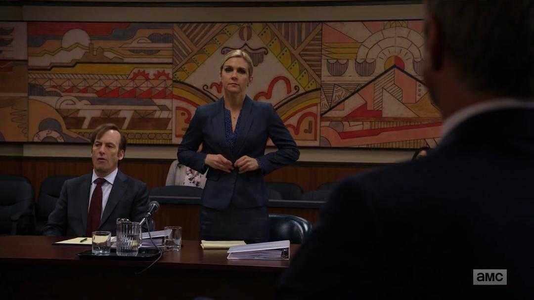 金在这里其实已经从Howard口中盘问出了吉米没有留在律所工作的原因——他哥哥不允许,至于原因,她没有说,也在三位陪审会委员心里埋下了小小的疑惑。