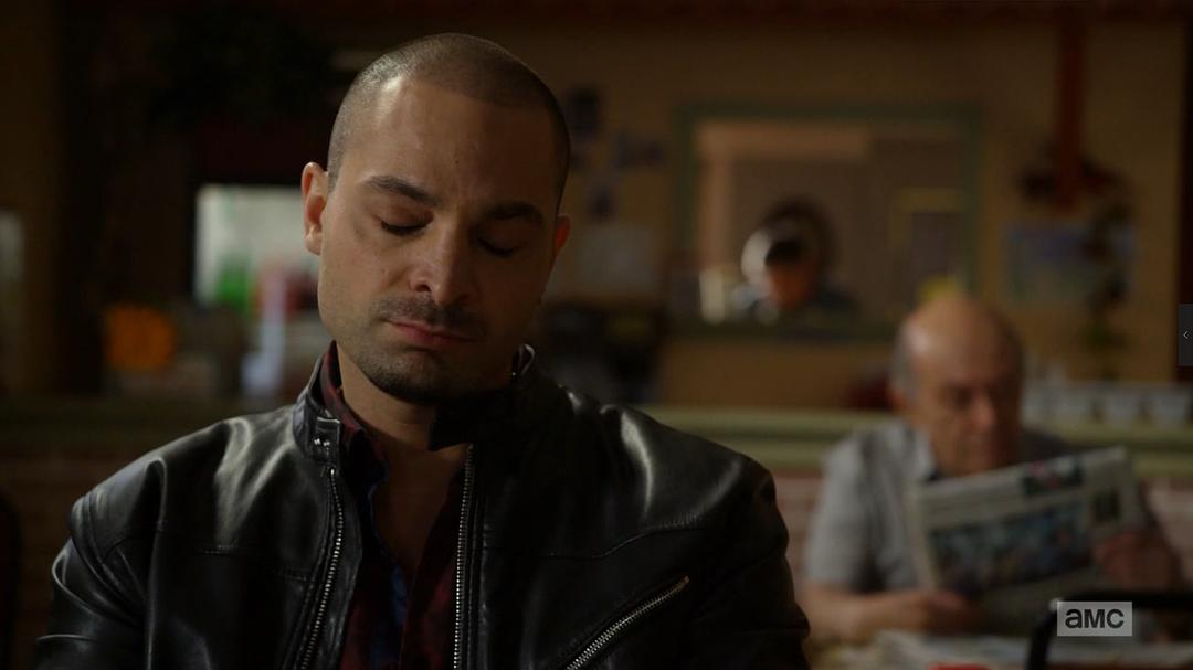 n8.BCS S3E3中,老麦和炸鸡叔叔接头,炸鸡叔叔的身后的小哥大家还记得不,Tyrus Kitt,炸鸡叔的保镖兼杀手兼司机,跟随炸鸡叔叔多年